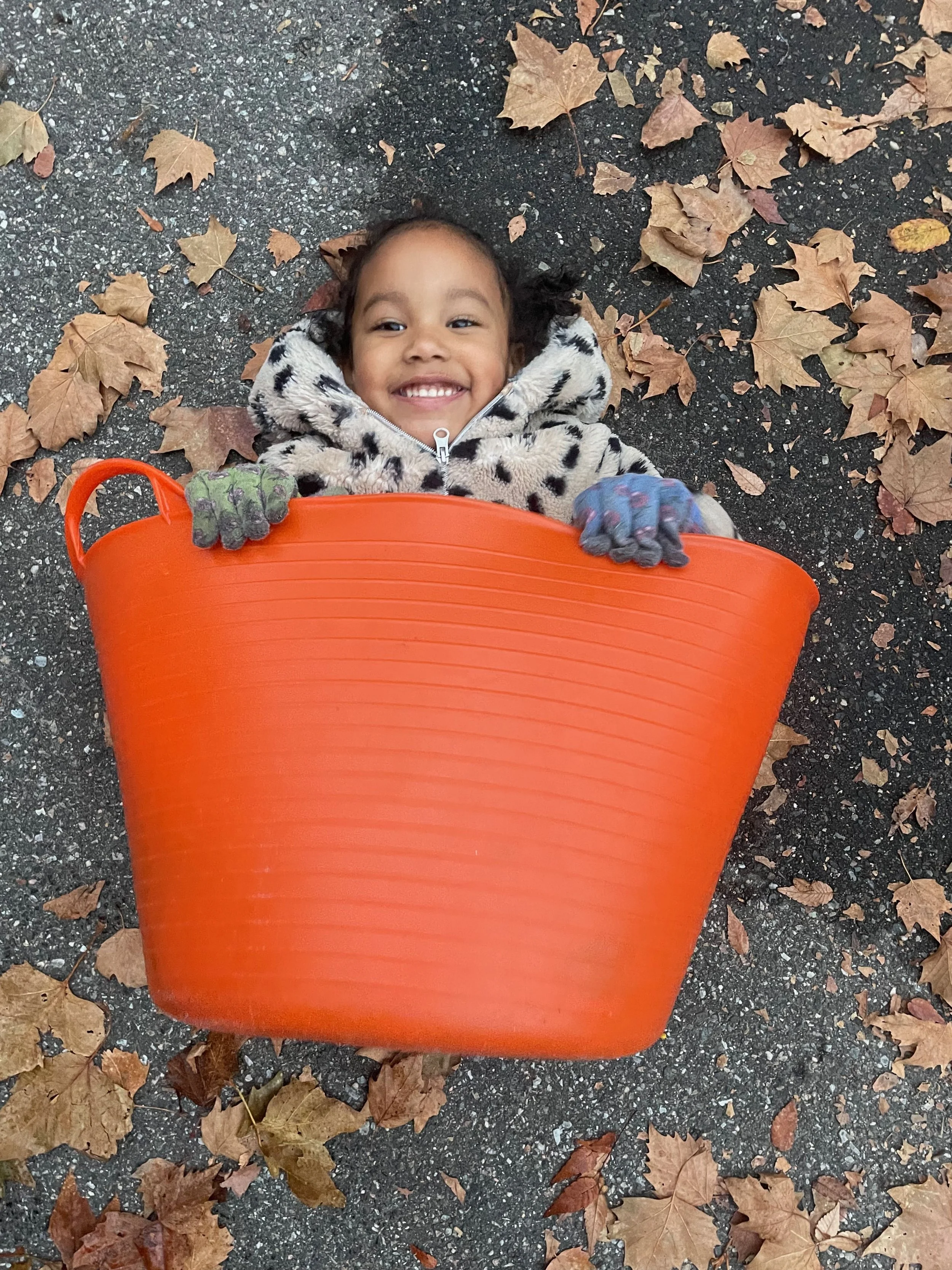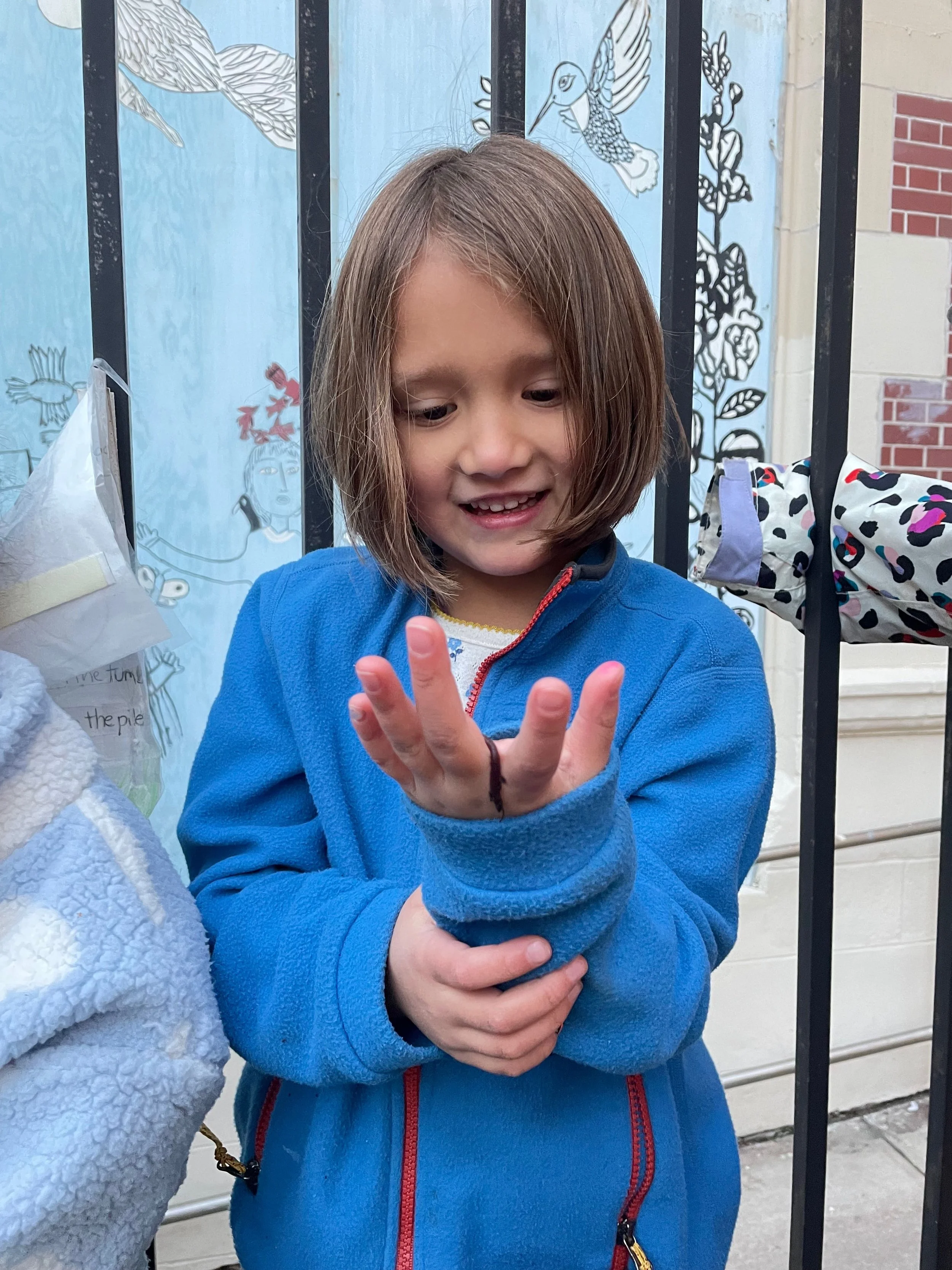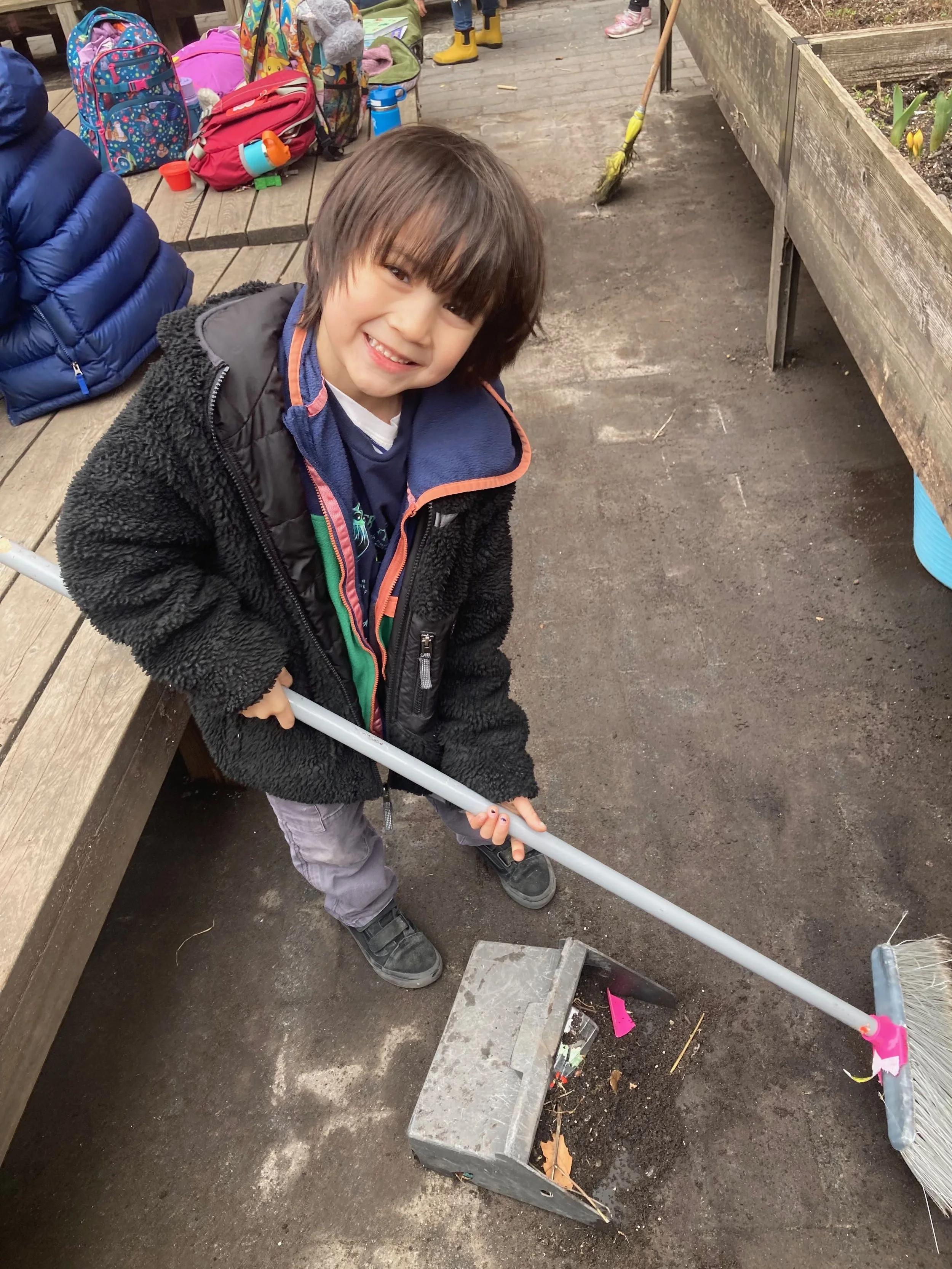 We prepare families by sending home a guide for how to dress appropriately for different types of weather. We send out a weekly newsletter including a forecast and tips on what to wear/pack. We also have a stash of clothing and gear for those times when you forget to send them to school with gloves or rain boots, etc… We routinely check the children’s hands for warmth on colder days and serve tea or hot cocoa. On rainy days we have a tarp to create a dry space and umbrellas. We tell the children that dressing for the weather is mandatory and they cannot go outside and play otherwise.