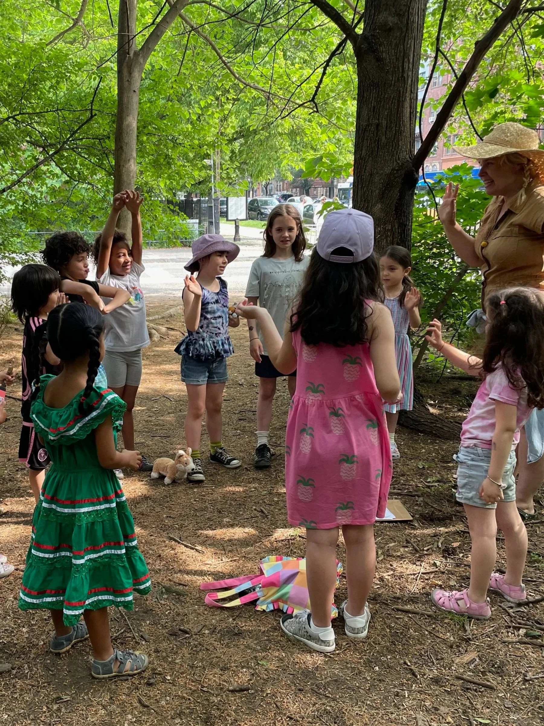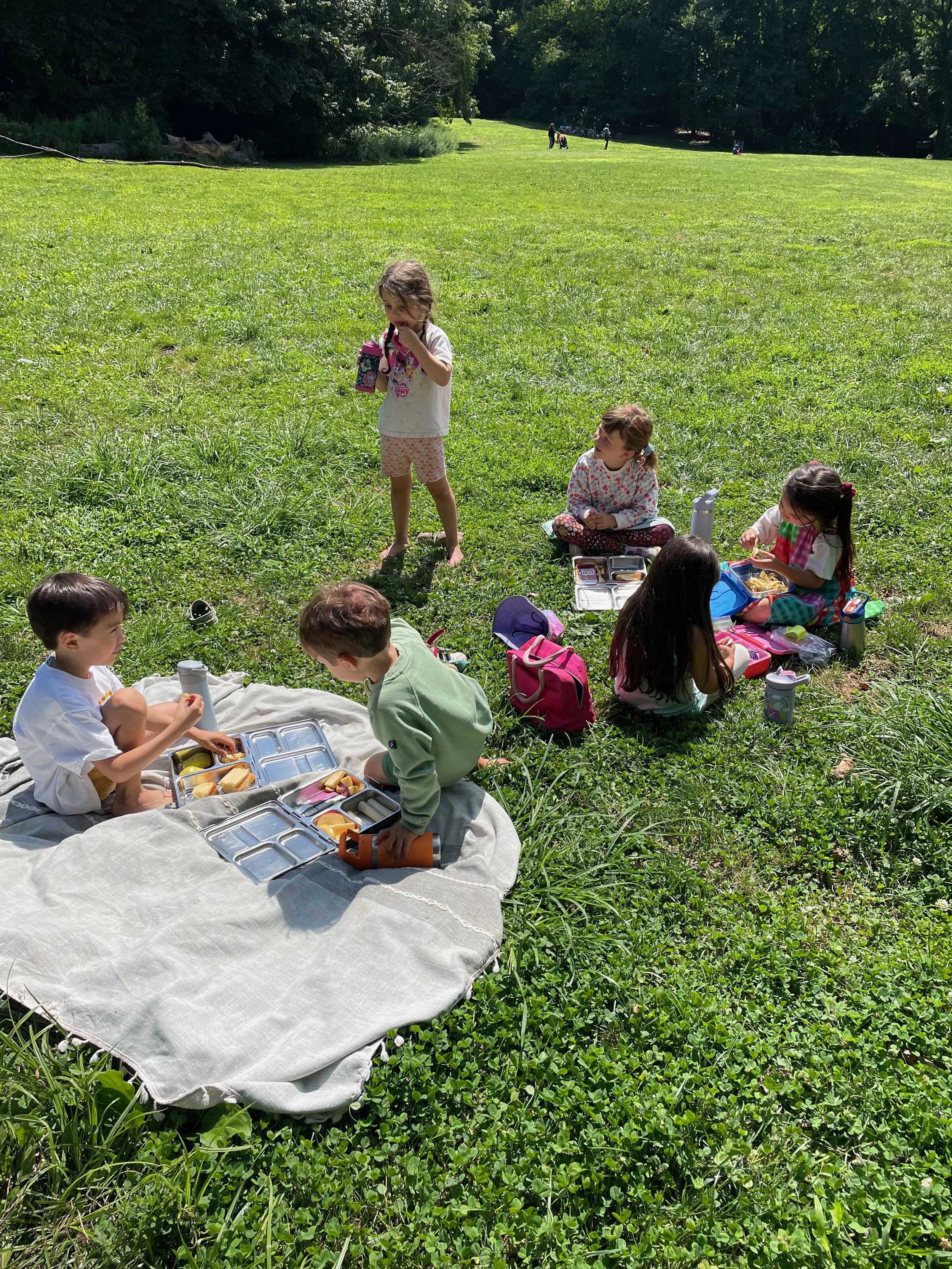 • Our day begins with Circle time, followed by a Forest activity, then we have a Naure Walk to a shady play location in the park where we will have our Morning Snack.